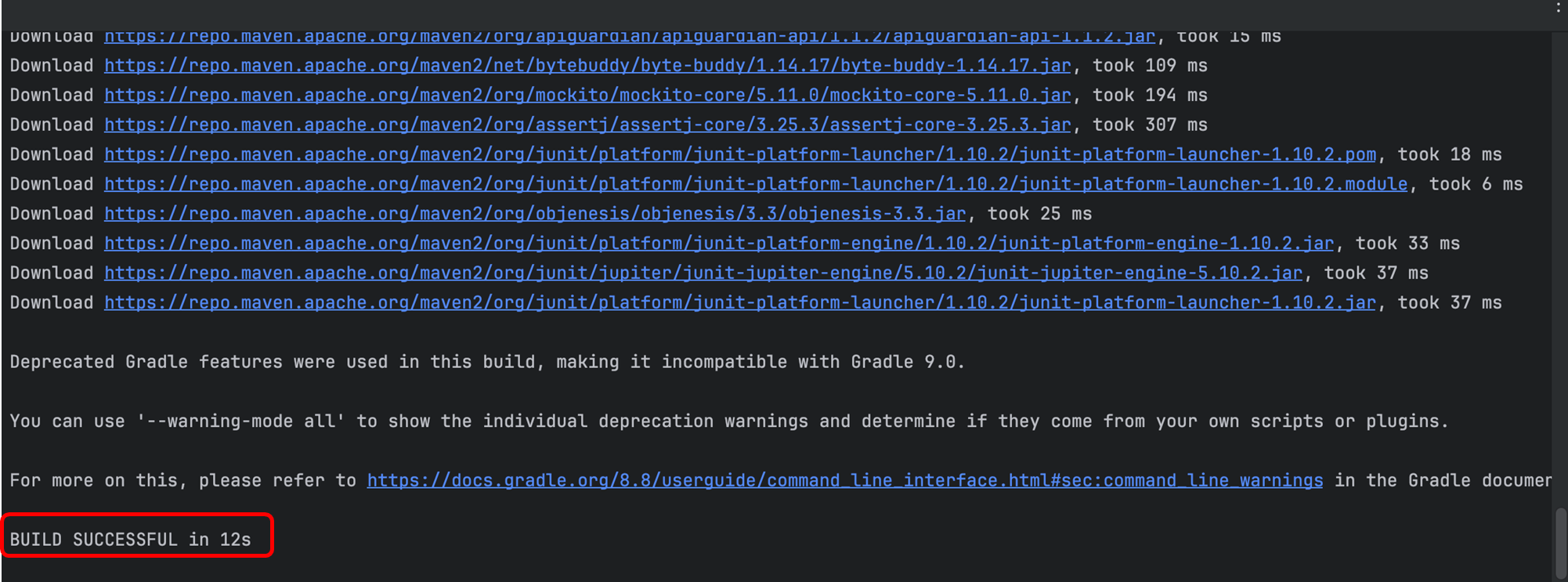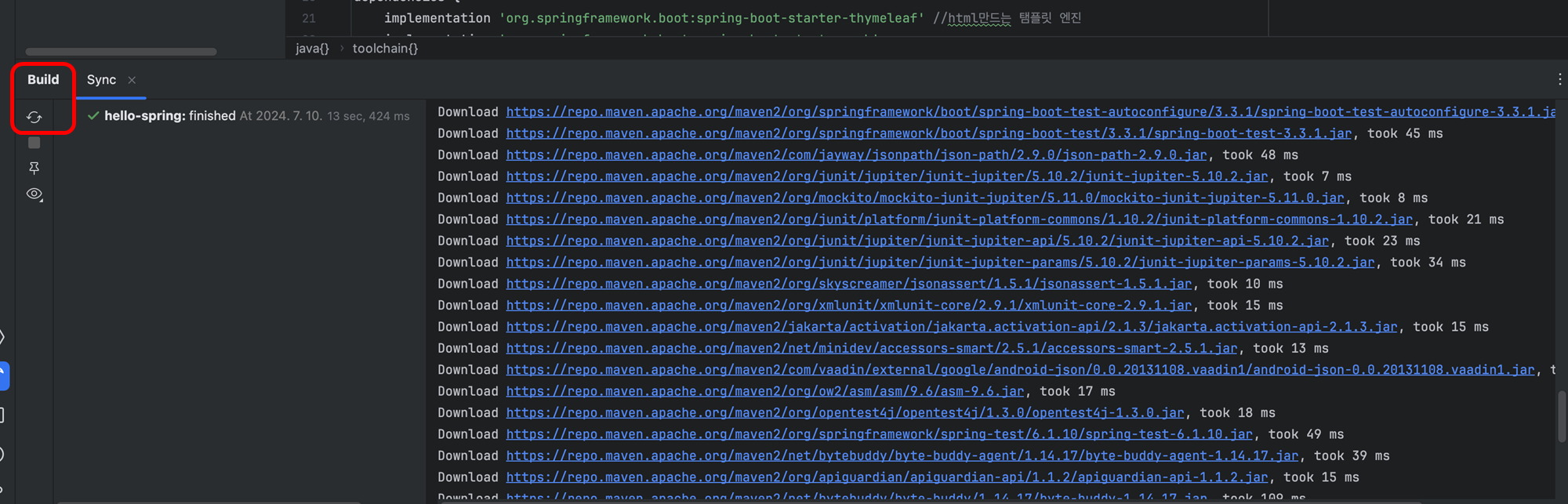 정상적으로 빌드가 되며 jar파일들이 다운로드가 된다.